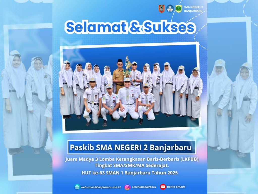Selamat kepada Paskib SMAN2 Banjarbaru yang berhasil meraih Juara Madya 3 pada Lomba Ketangkasan Baris-Berbaris (LKPBB) Tingkat SMA/SMK/MA Sederajat, dalam rangka HUT ke-63 SMAN 1 Banjarbaru Tahun 2025.