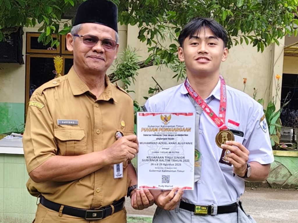 Selamat kepada Muhammad Azriel Khafi Algifanie yang telah meraih Juara 1 Kelas 60 Putra pada Kejuaraan Tinju Junior Gubernur Kaltim Tahun 2025, yang diselenggarakan pada 26–29 Agustus 2025 di Samarinda.