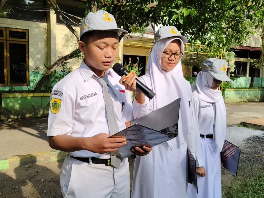 Pembina upacara kali ini, Denok Purwanti, menyampaikan amanat yang penuh makna tentang tanggung jawab seorang pelajar.