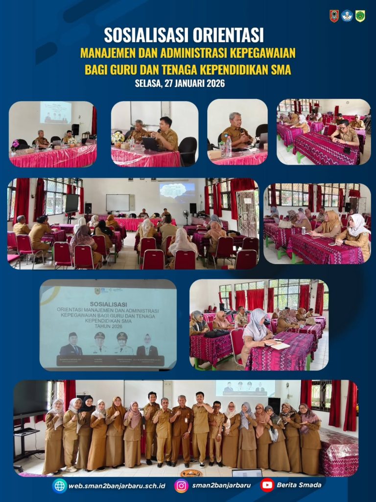 Kegiatan Sosialisasi Orientasi Manajemen dan Administrasi Kepegawaian bagi Guru dan Tenaga Kependidikan SMA dilaksanakan pada Selasa, 27 Januari 2026, sebagai upaya meningkatkan pemahaman dan tertib administrasi kepegawaian guna mendukung profesionalisme pendidik dan tenaga kependidikan.